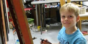 Milo was nice enough to pose for some more photos while he worked on stripping his playfields. That’s our boy!