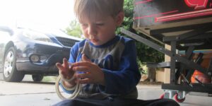 All on his own, Max decided to sort the parts from the tumbler. What a good helper!