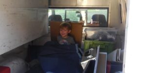 Someone tried to go to work with Daddy. Max snuck into the back of the truck while we were loading our supplies, and then he tried to hide under a moving …