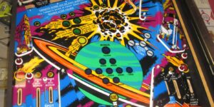 Look what we’re doing this week! Playfield swap on a Flight 2000. The folks at Stern made about 6,300 of these in 1980. It was their first talking machine.