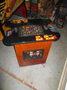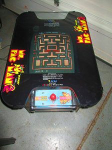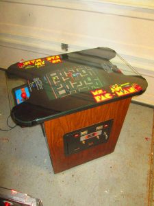 We’re selling our original 1982 Bally Namco Ms. Pacman Cocktail arcade video game. This is one of the original games like you’d find at Pizza Hut back in the day.