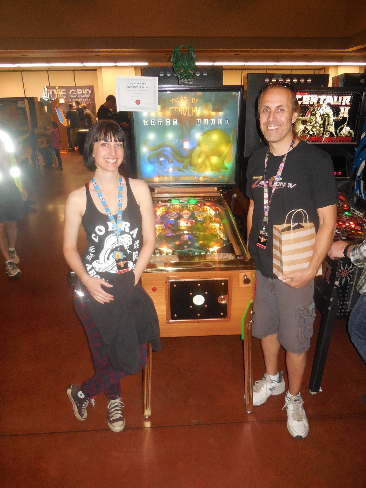 For their hard work, they received a Firebird Pinball Best of ZapCon Victory Monster trophy, and a grab bag of goodies, including gift cards generously donated by Cobra Arcade, and a few tokens of appreciation from the folks at ZapCon. And, of course, the satisfaction in knowing they legitimately rock.