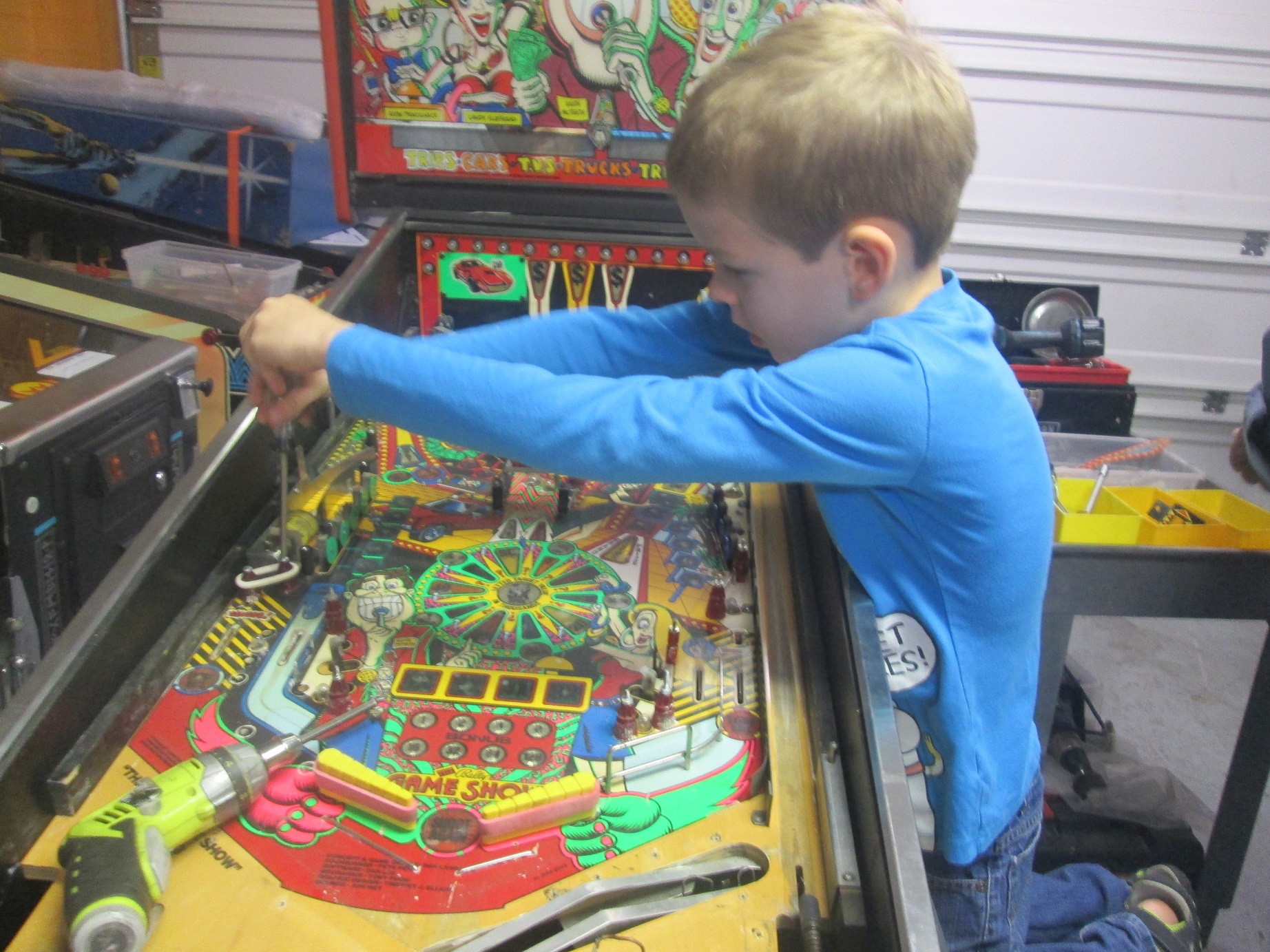 Milo was looking forward to many things this holiday break: Christmas, video games, and, of course, getting in some work in the shop. Really! He and Grandpa teamed up to tackle our Game Show shop job this week. We’re so proud of our junior tech! (And Grandpa’s not bad too…)