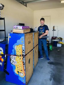 It’s us! The same goofballs that founded this pinball repair company 14 years ago!Still moving games together after all these years!Our first lunch break ever.Back to work!Call us today! Maybe we’ll both come out and fix your games too!!