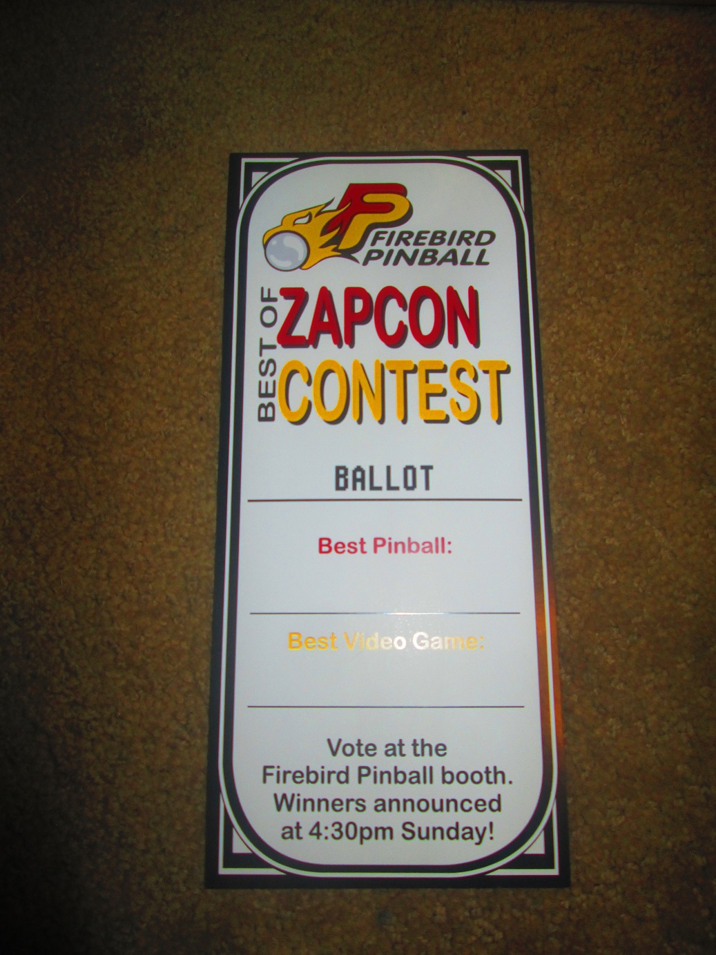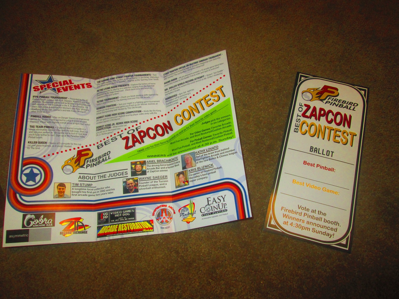 Here’s a close-up of the most important part of your program: Your official ballot for Firebird Pinball’s Best of ZapCon 2017. Make sure to vote for your favorite games, and turn in your ballot at the Firebird booth. Winners will be announced at 4:30 Sunday afternoon!